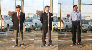 | 左から岩田満県副会長、吉田日支雄稲沢理事長、川口能文認定委員長の挨拶 | |||