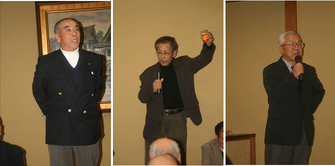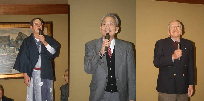 | (左側)野田洋指導委員長 ・ (中央)岩田満尾張支部会長 ・ (右側)後藤幸平尾張支部理事長の挨拶 | ||||
