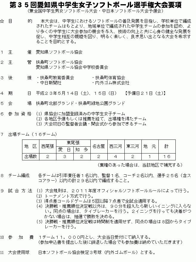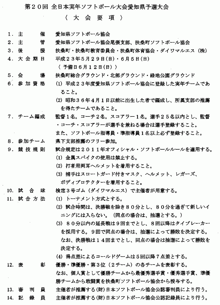 平成23年6月吉日 扶桑町ソフトボール協会 会長 川田
