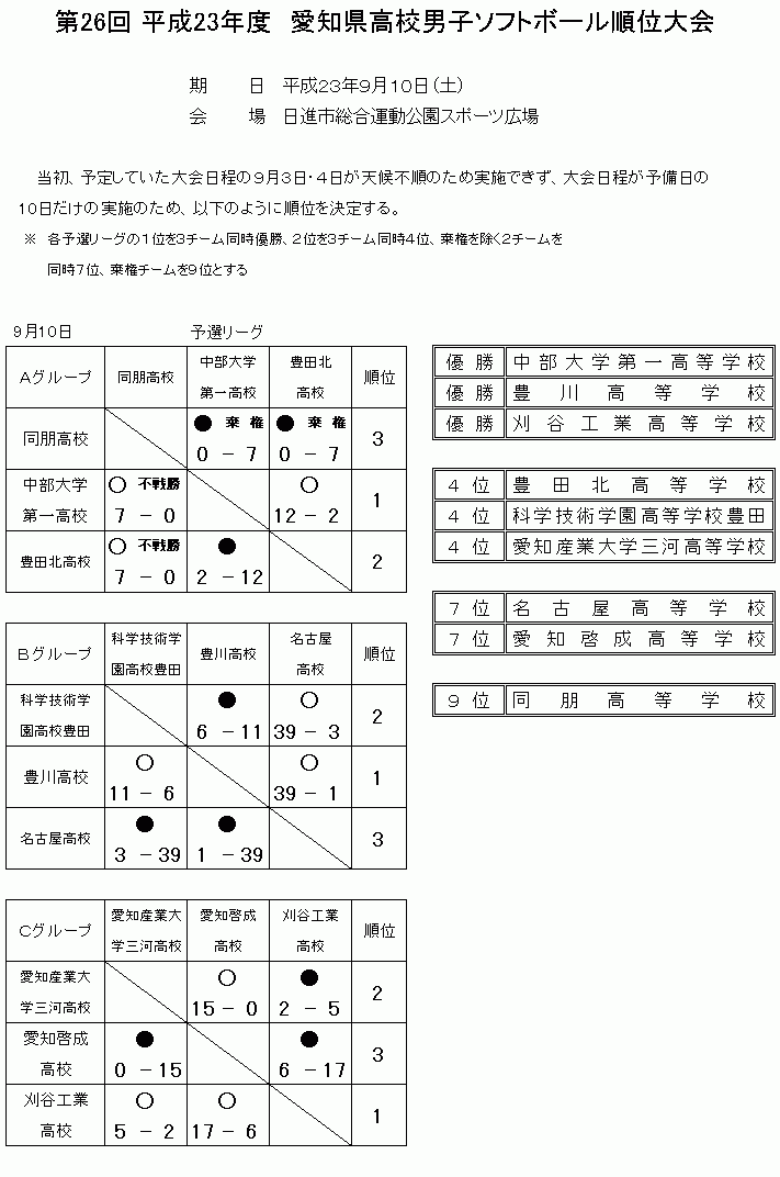 第9回 東尾張小学生ソフトボール選手権大会は、多くの方々のご支援ご協力により、無事に終えることができました。結果につきましては上記の通りであります。
