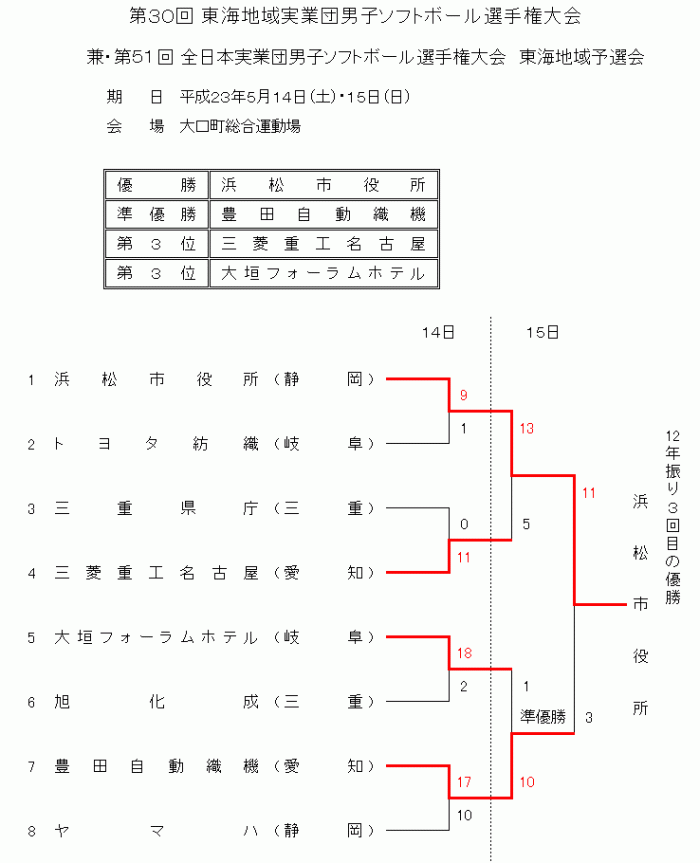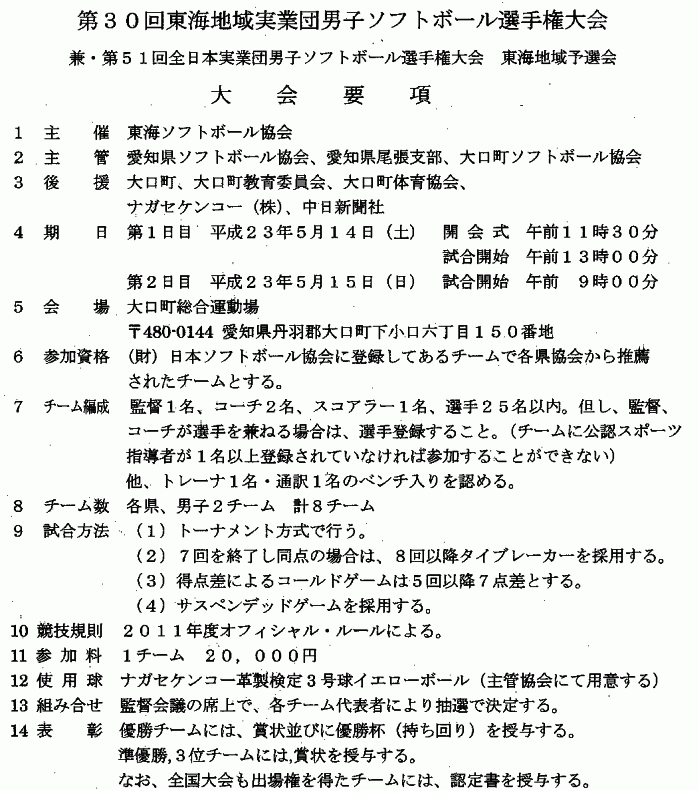 上へ 第30回 東海地域実業団ソフトボール選手権大会