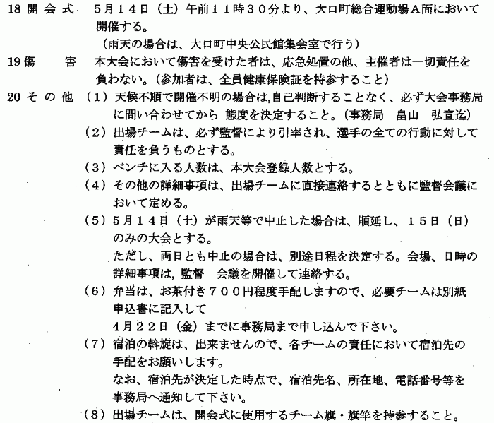 平成23年5月吉日 大口町ソフトボール協会 会長 柳沢