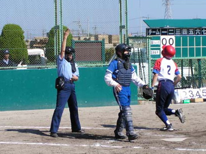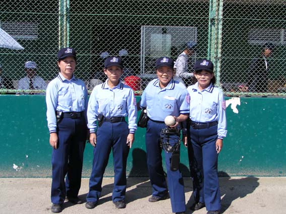 | ストライク 球審は田辺ヨシ子 | 決勝戦の田辺、稲葉、山田、岡垣の4審判 |