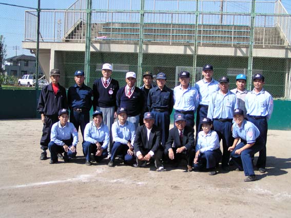 | 大会役員 審判・記録員の皆さん 前列 中央右 戸部会長 中央左 野崎理事長 |